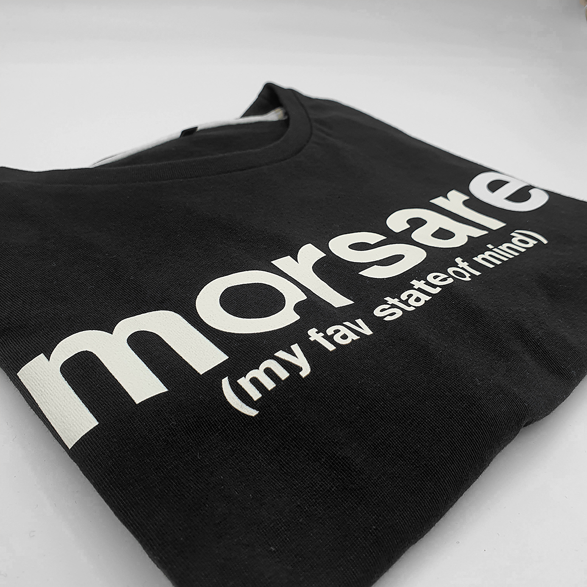 Fronte: scritta “morsare” realizzato con stampa su tessuto